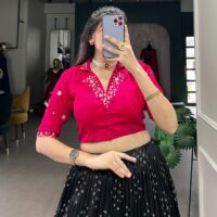Skirt comes stitched free size max 42 inches waist and blouse unstitched