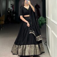Be the first to review “BLACK CHANDERI SILK LEHENGA PREORDER SPECIAL LNB1906BLK”