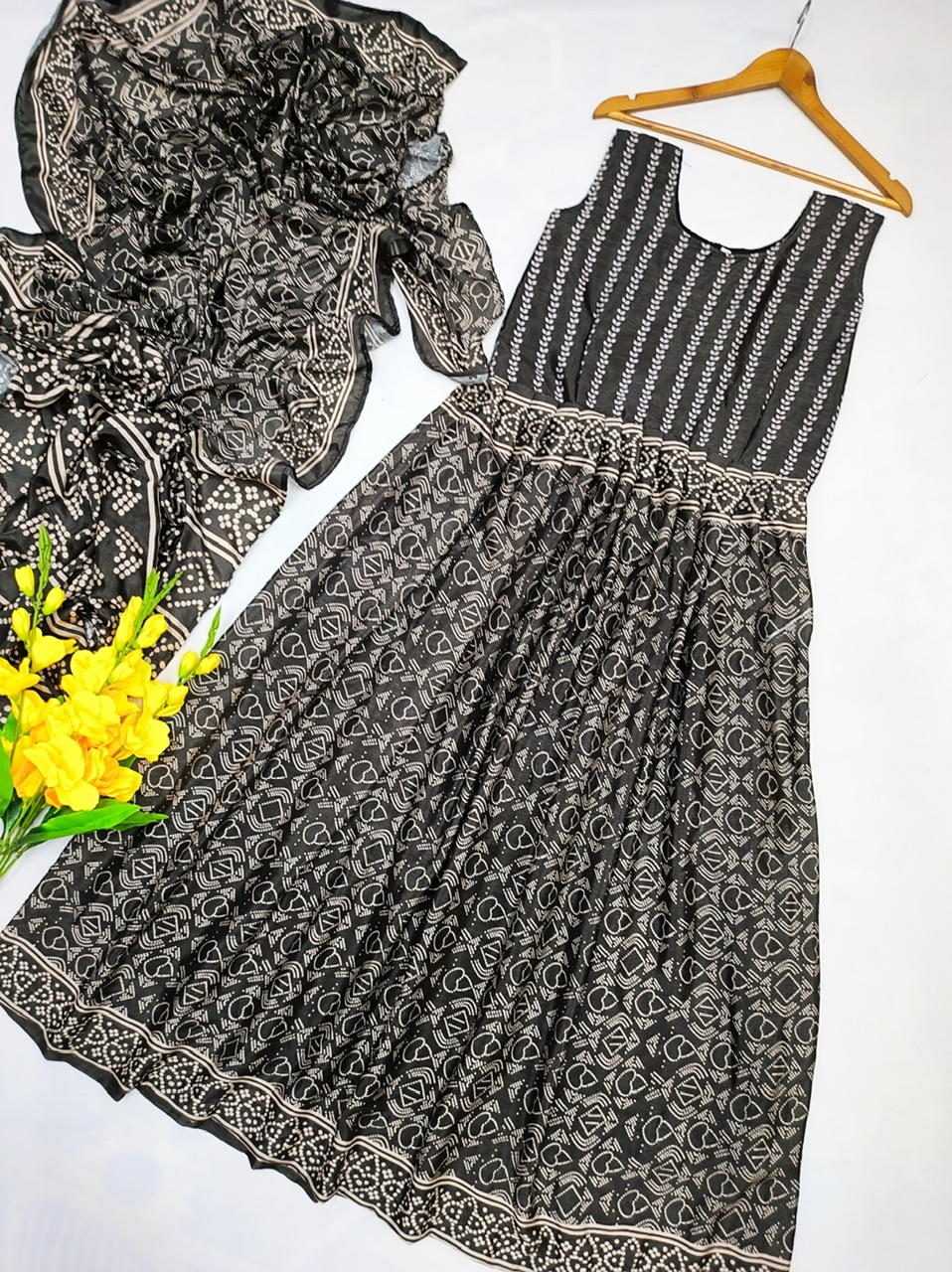 New bollywood wardrobe team ready made chinnon silk with digital print gown saree