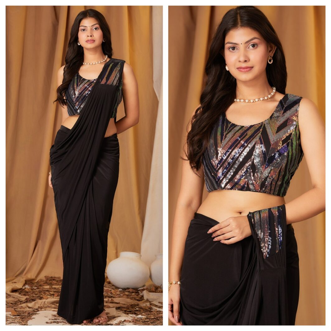 New designer ready to wear one minute saree imported lycra material with ready made sequin blouse