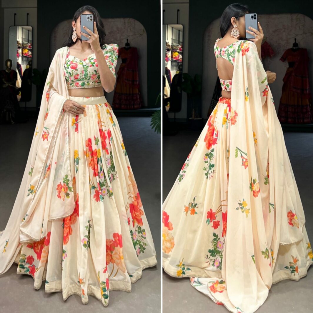 New designer georgette floral lehenga with canvas inner and no cancan so light to wear