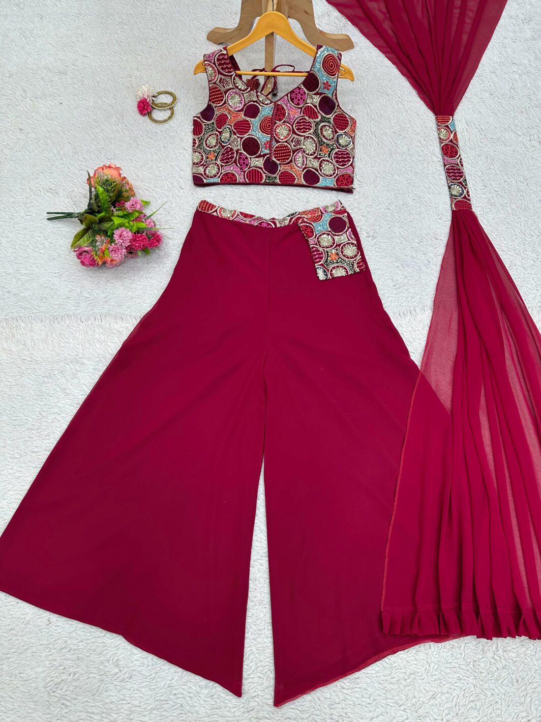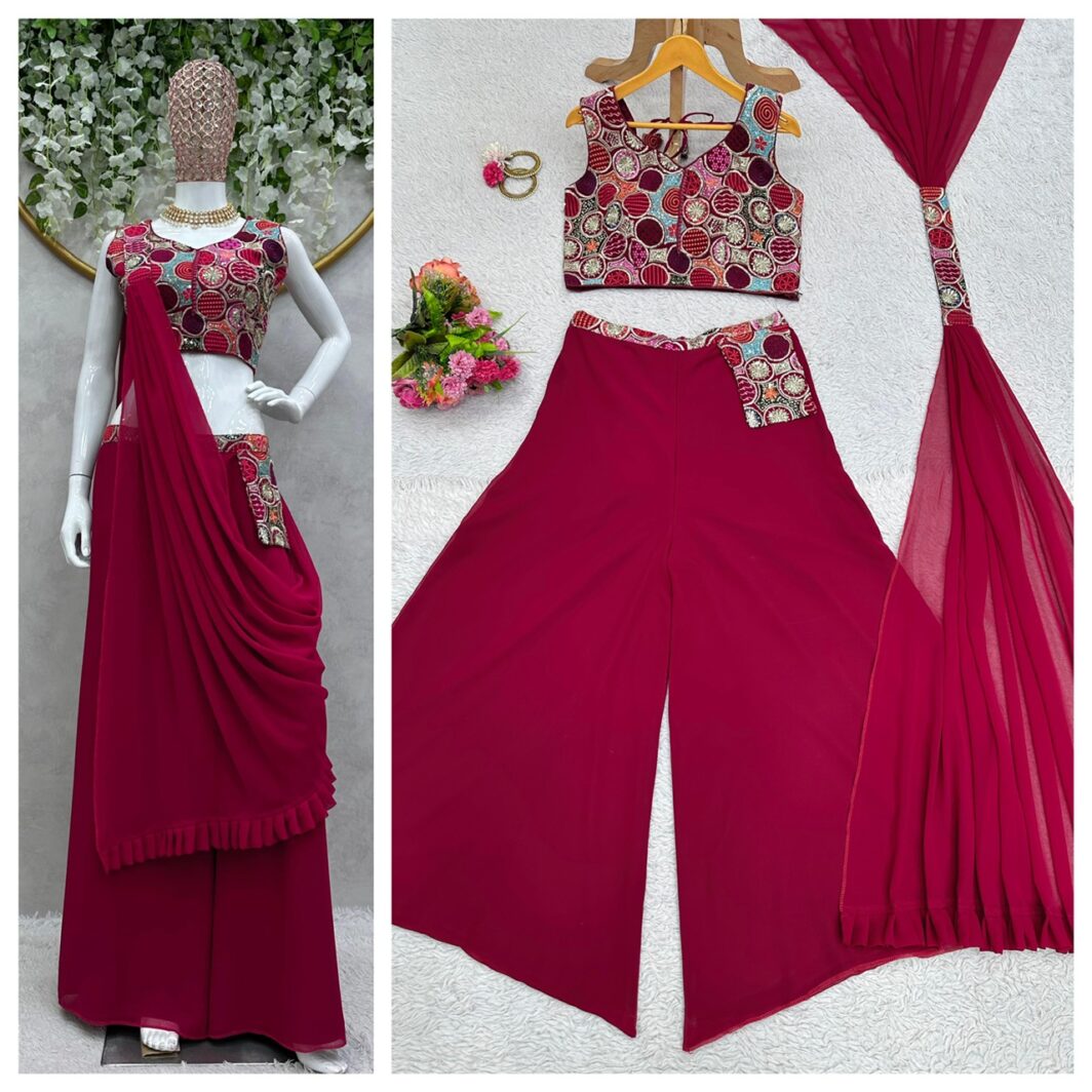 New Bollywood wardrobe team ready made georgette palazzo suit with sequin embroidery work