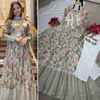 New Bollywood wardrobe team ready made georgette digital printed gown with sequin embroidery work