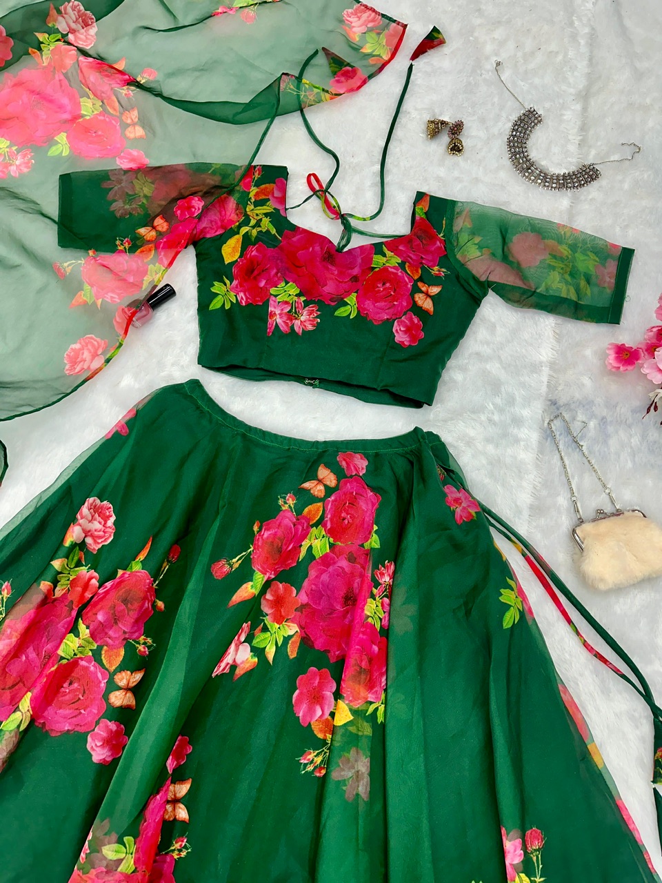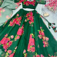 New Bollywood wardrobe team organza silk ready made digital printed floral lehenga