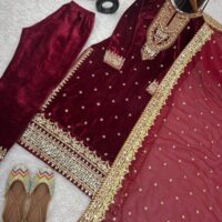 New Bollywood wardrobe team ready made viscose velvet suit with sequin embroidery work