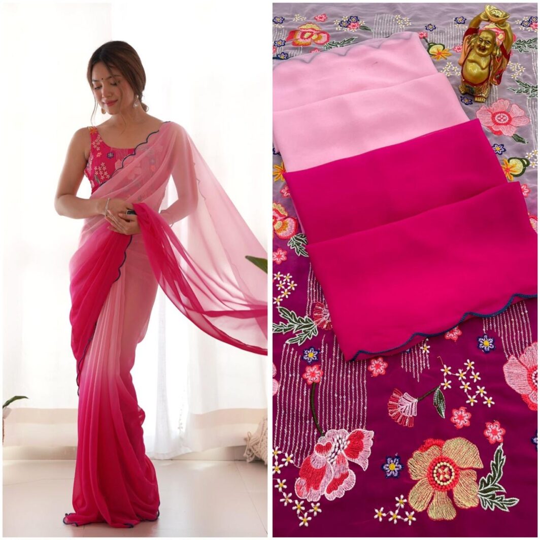 New Bollywood wardrobe team georgette rsaree with fancy acro border