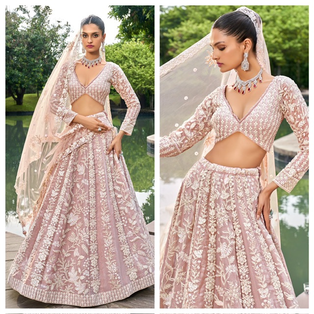 New designer bridal net lehenga with gota patti and moti embroidery work