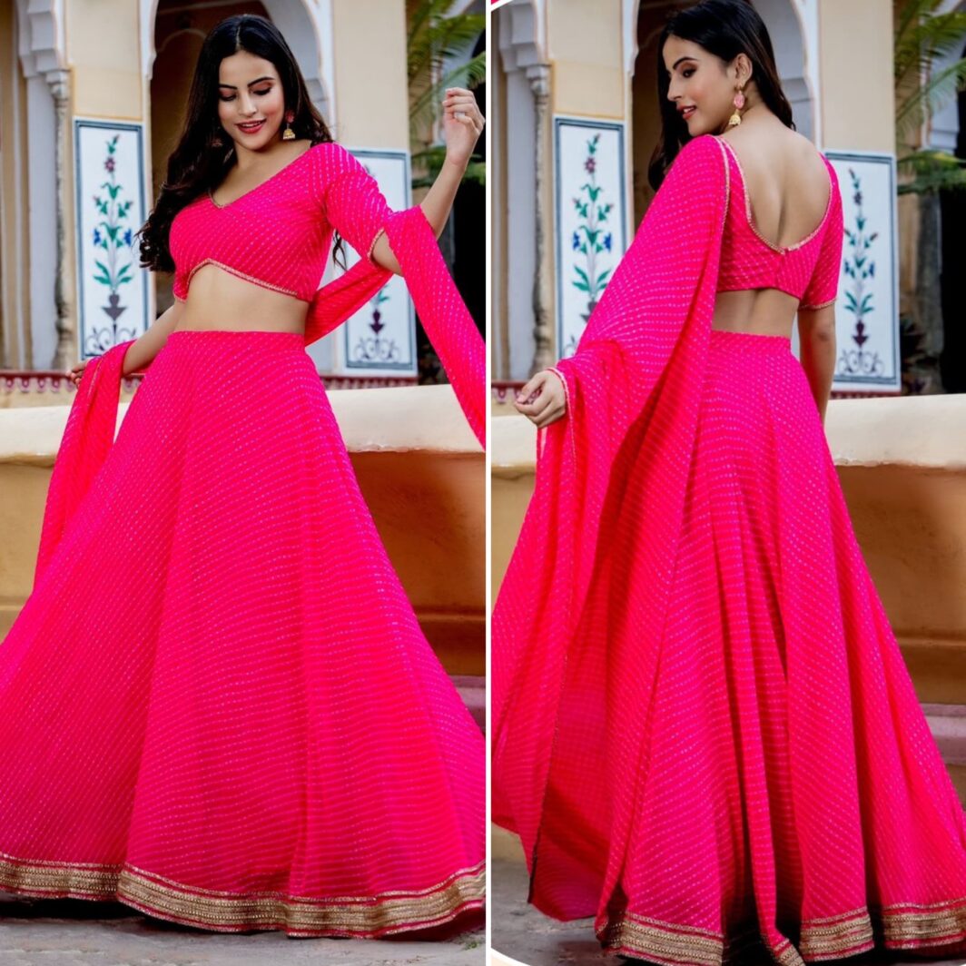 New designer georgette lehenga with leheriya print, zari and coding work