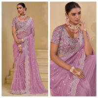 PINK PURE BANARASI TUSCANY SAREE WITH CUT-DANA, MOTI AND SEQUENCE HEAVY WORK