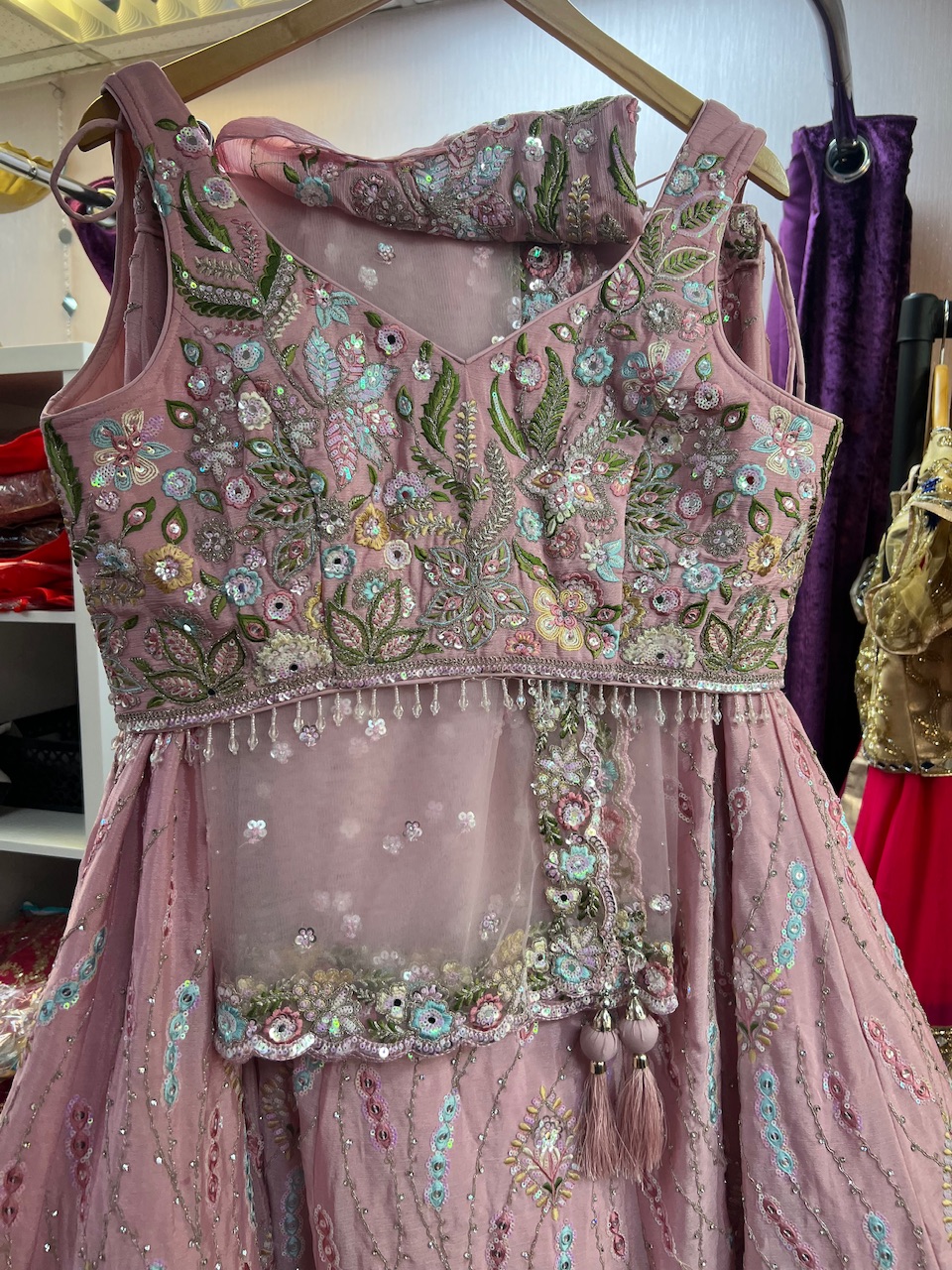 New designer chiffon lehenga with sequin and zarkhan embroidery work