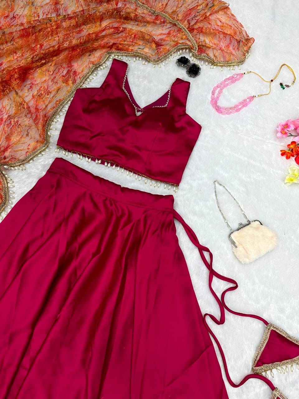 New Bollywood wardrobe team ready made satin silk lehenga with zari border