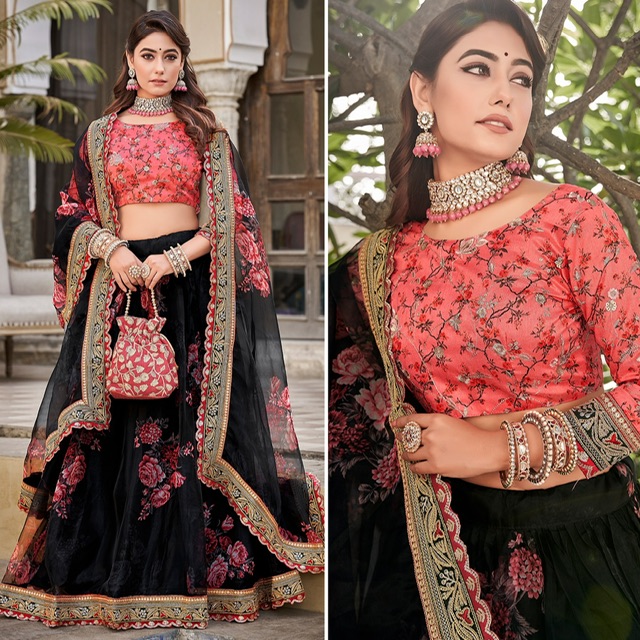 New designer organza silk digital printed lehenga with sequin lace border