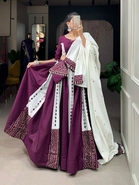 New navratri premium range ready made pure cotton lehenga with real mirror work
