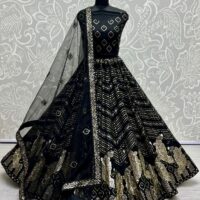 New designer net lehenga with thread and sequin embroidery