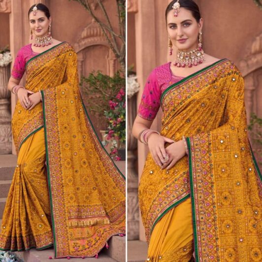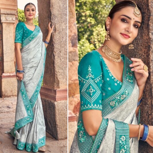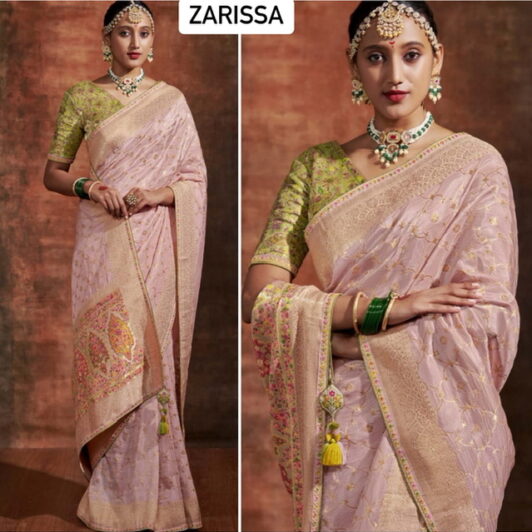 New digital printed floral saree with pearl work border