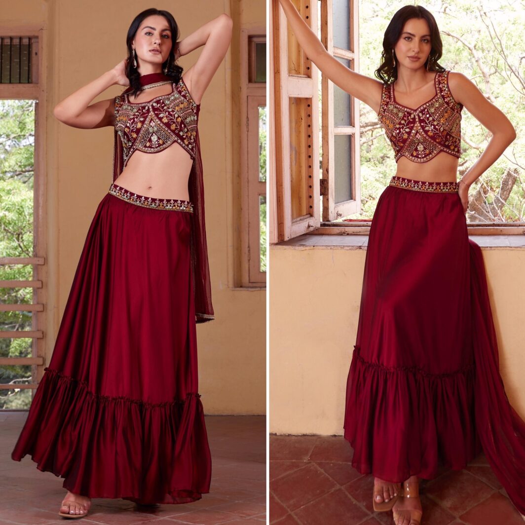 New designer ready made lehenga with thread, mirror and hand embellishment