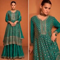 New designer free size stitched chinon silk suits with embroidery work