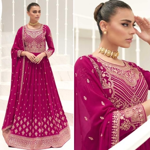 New designer georgette free size stitched gown with embroidery work (limited launch)