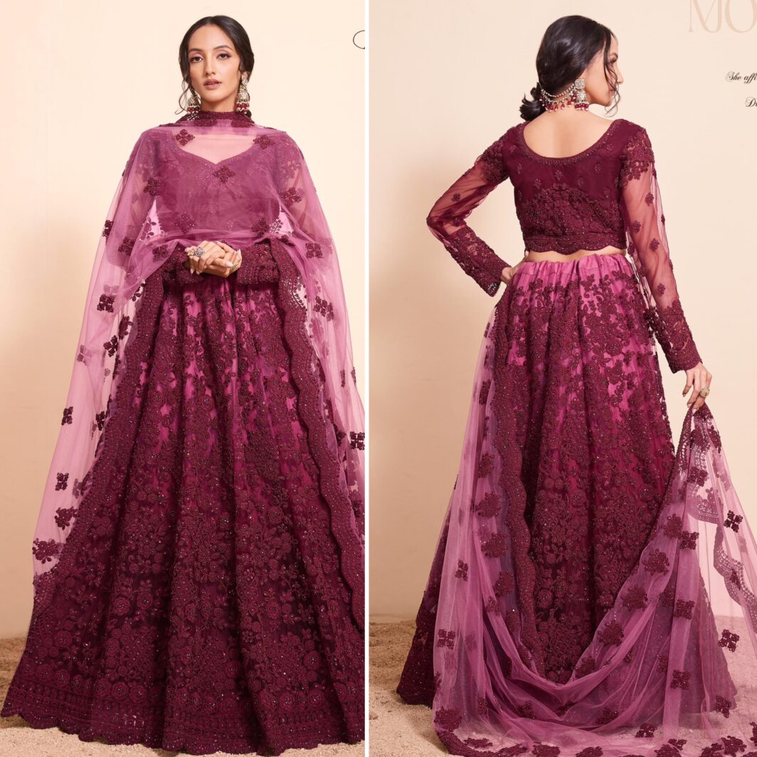 New designer soft net lehenga with thread and stone embroidery work