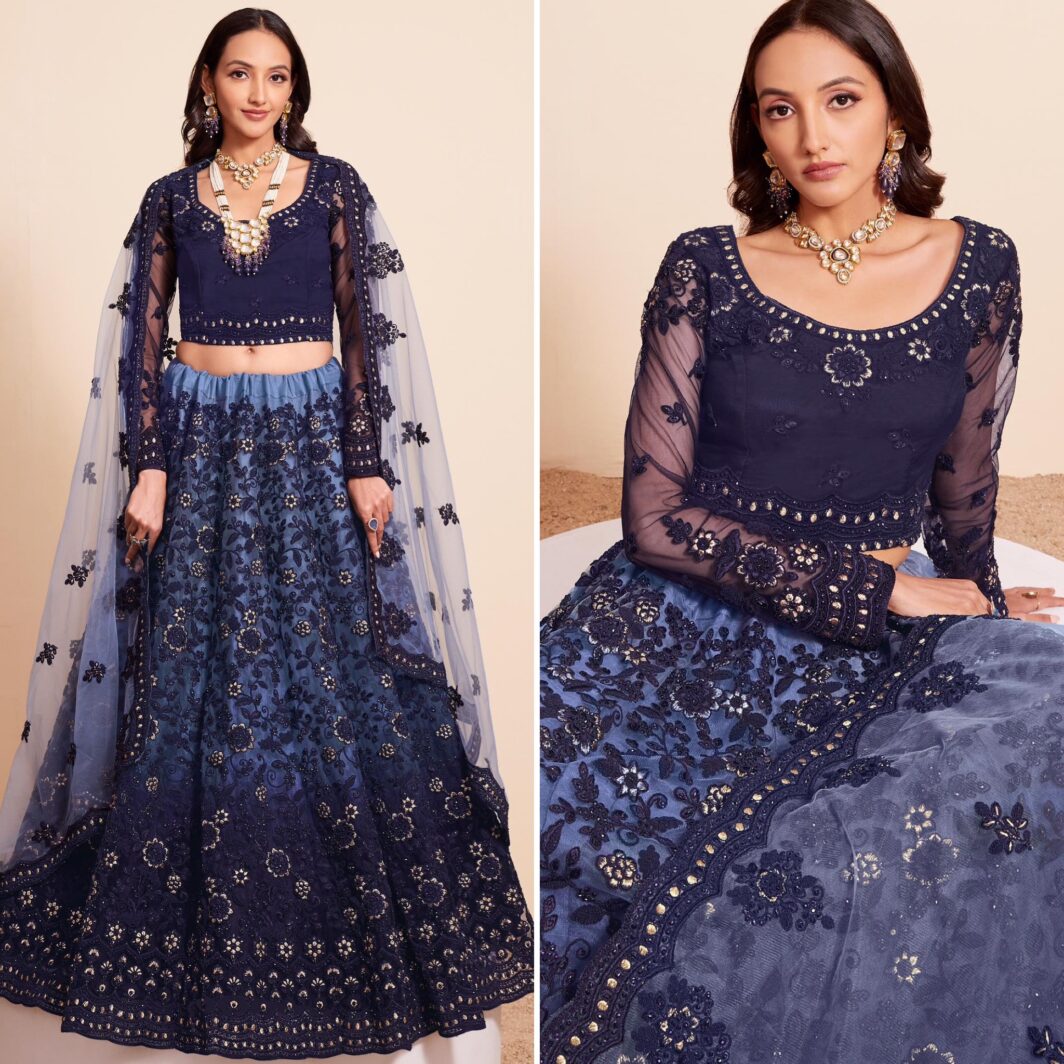 New designer soft net lehenga with thread and stone embroidery work