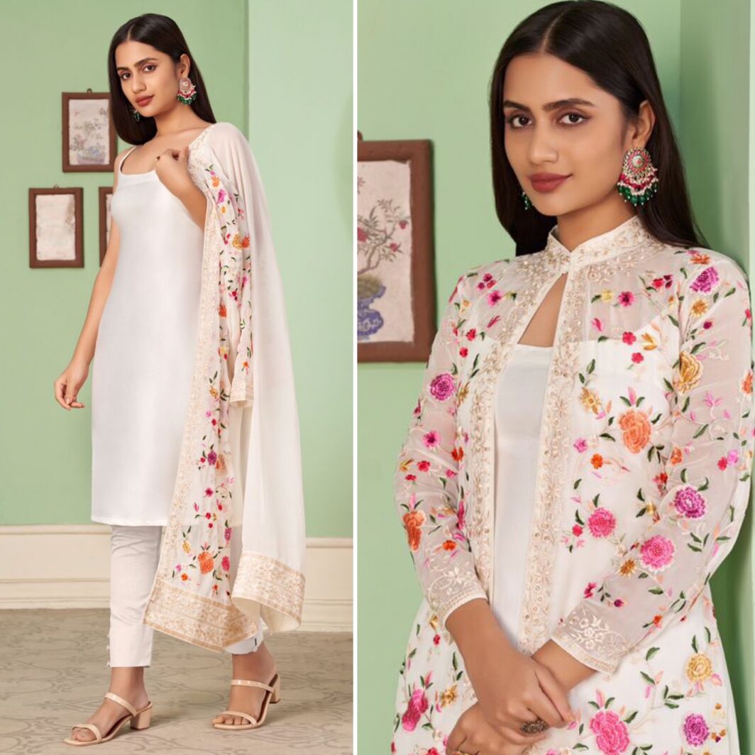 Jacket semi stitched max 44 inches chest and inner and bottoms unstitched