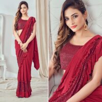 New designer imported lycra ready to wear saree with sequin work on blouse and saree