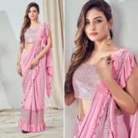 New designer imported lycra ready to wear saree with sequin work on blouse and saree