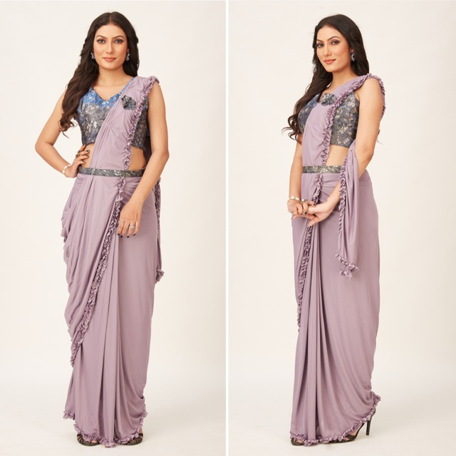 New designer ready to wear imported lycra saree with ready made blouse size 36 inches opens to 40 inches
