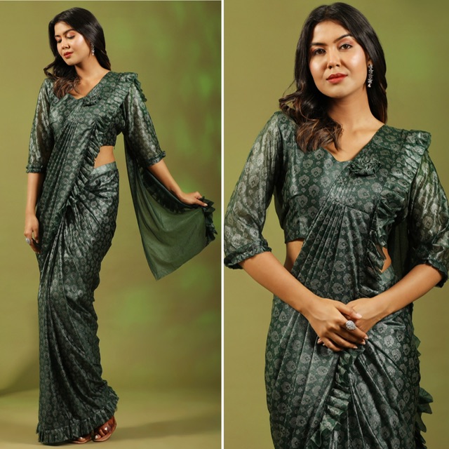 New designer ready to wear imported lycra saree with ready made blouse size 36 inches opens to 40 inches