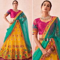 New designer premium net lehenga with multi thread, zari and golden diamond work