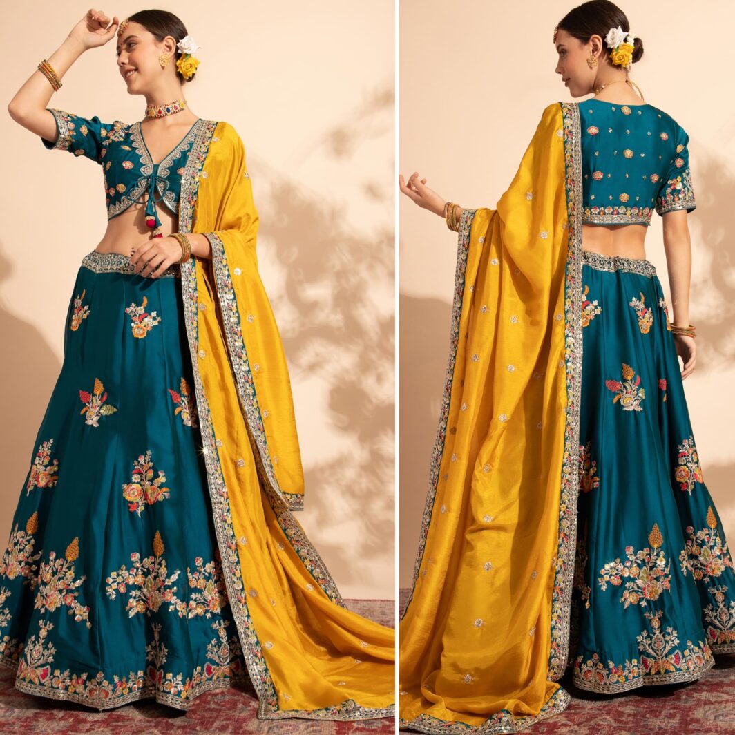 New designer ready made organza silk lehenga with thread and sequin embroidery work