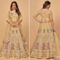 New designer premium soft net lehenga with mirror, thread, dori and zarkan embroidery
