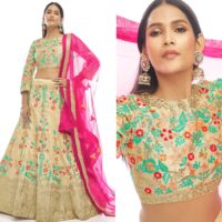 New designer cream art silk lehenga with zari, thread and sequin embroidery