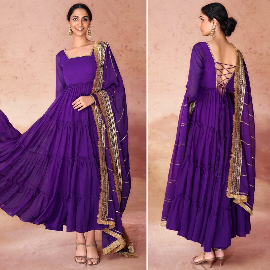 New designer ready made Georgette gown with embroidery work