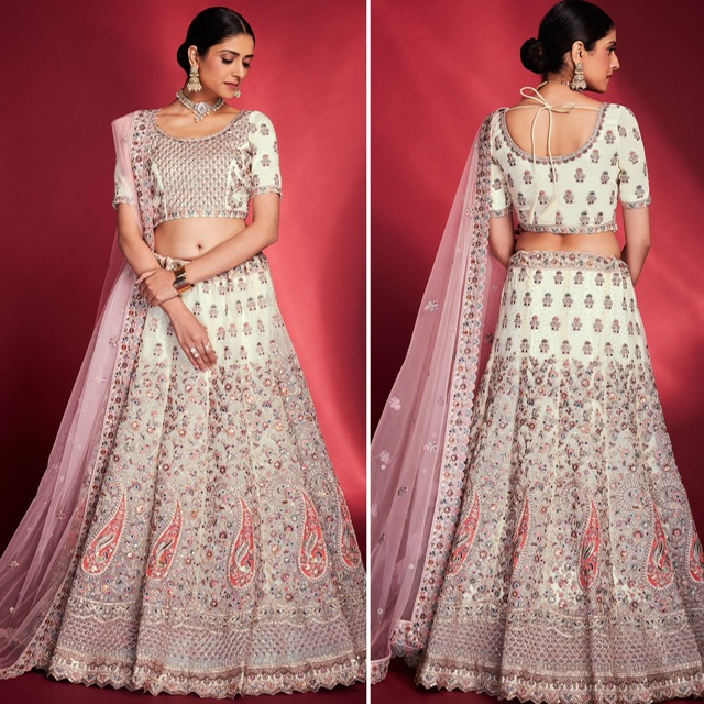 New designer soft silk lehenga with dori, thread, sequin and zarkhan embroidery work