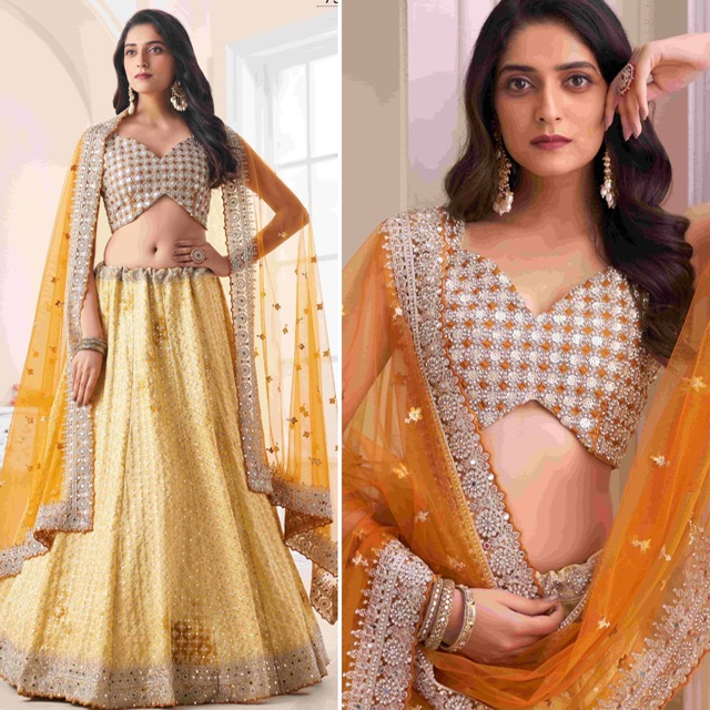New designer georgette lehenga with dori, sequin, stone and mirror work