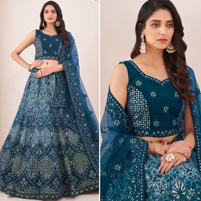 New designer soft net lehenga with dori, sequin and zarkan embroidery work
