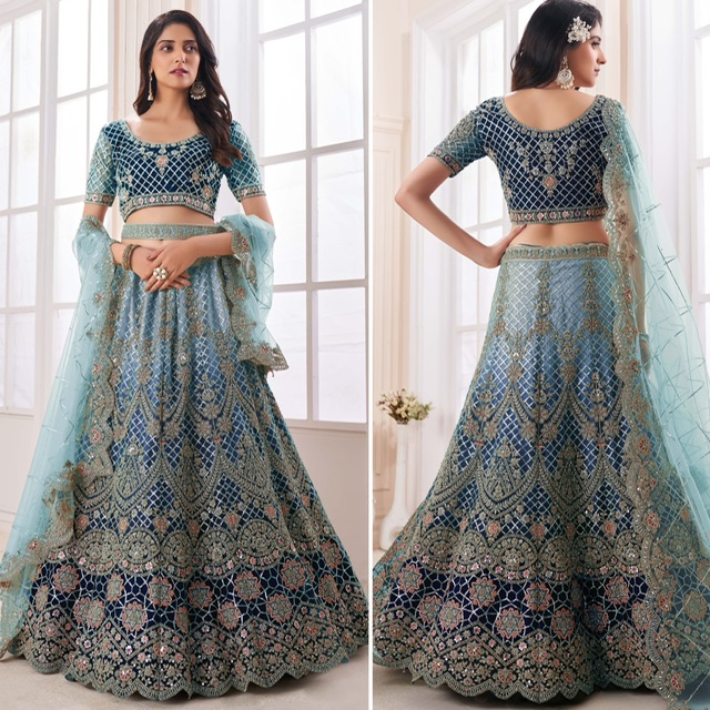 New designer soft net lehenga with thread, dori, sequin and stone embroidery work