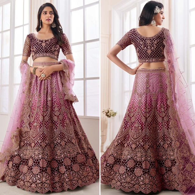 New designer soft net lehenga with thread, dori, sequin and stone embroidery work