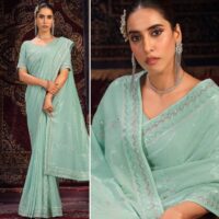 New designer georgette saree with sequin, mirror and zarkan embroidery work