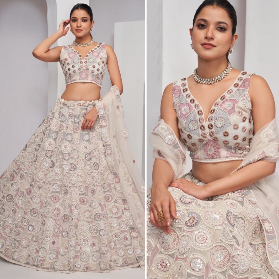 New premium range soft net lehenga with sequin, thread, zarkan and thread embroidery work