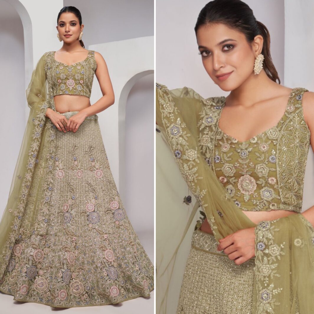 New premium range soft net lehenga with sequin, dori, zarkan and thread embroidery work