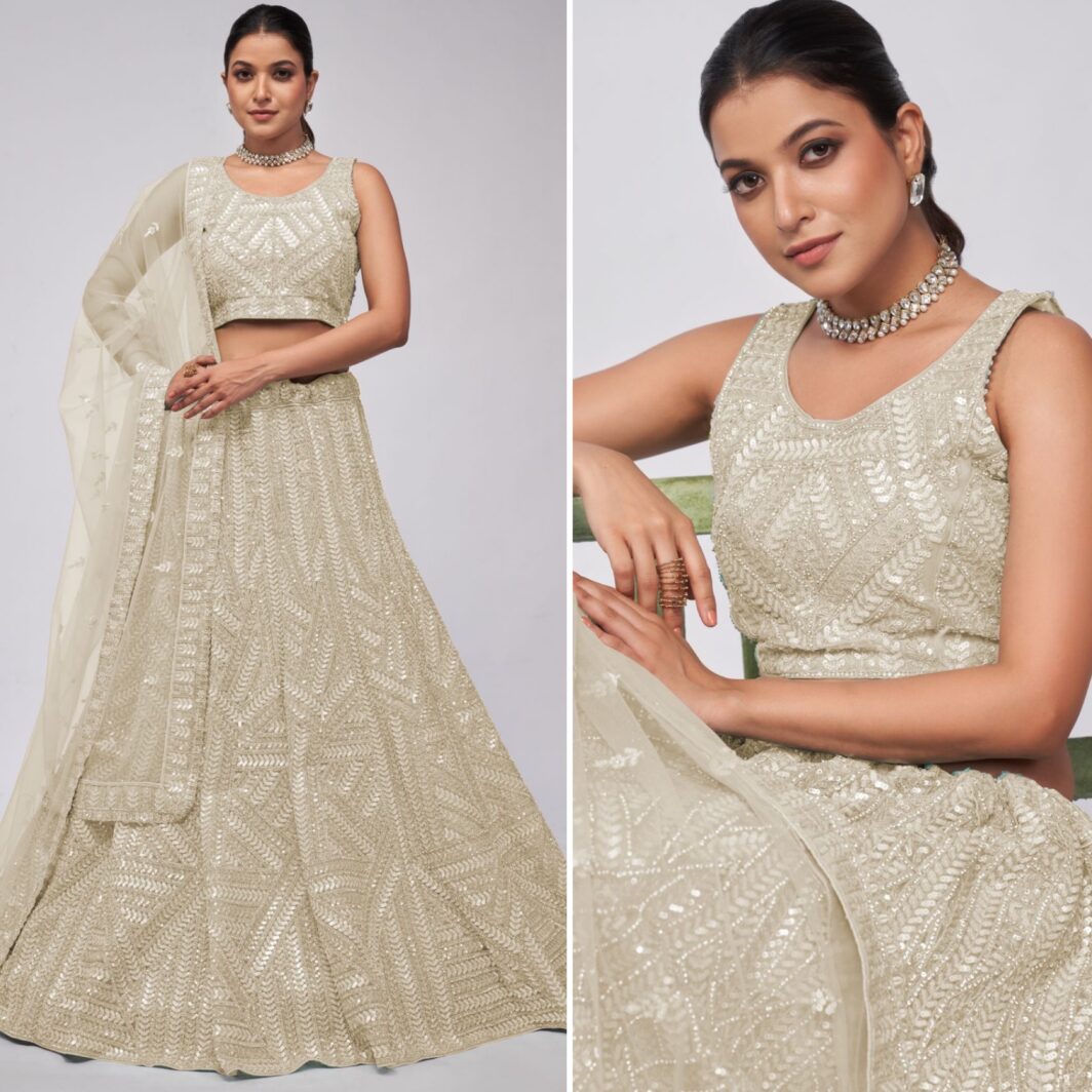 New premium range soft net lehenga with sequin, zarkan and dori embroidery work