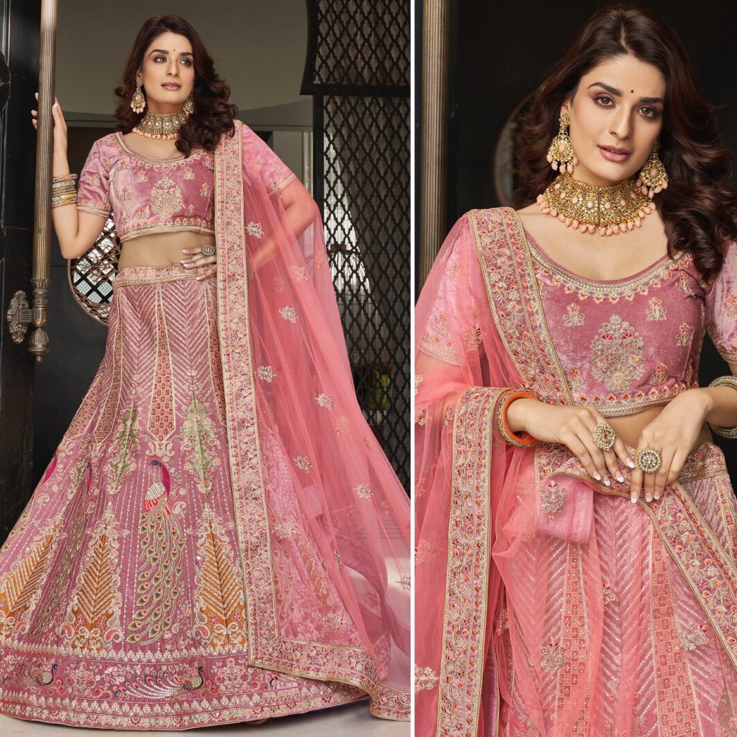 New designer premium velvet lehenga with thread, zari, dori, sequin and zarkan embroidery work