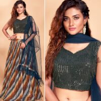 New designer ready made imported sequin digital printed lycra lehenga