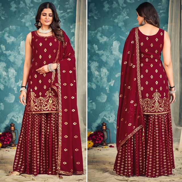 New designer ready made Georgette suit with sequin and zari embroidery