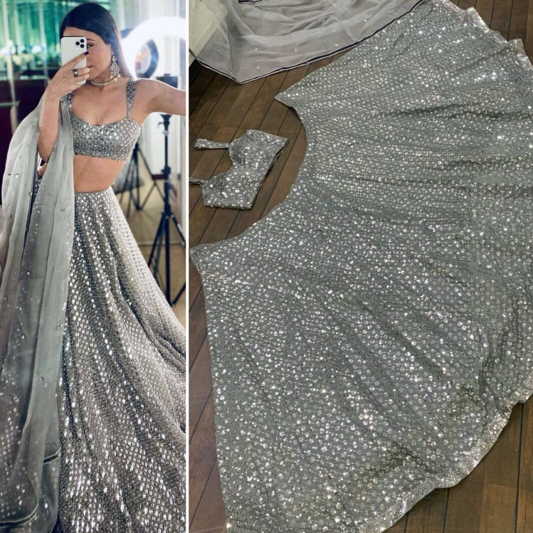 New Bollywood wardrobe team crepe silk lehenga with sequin work