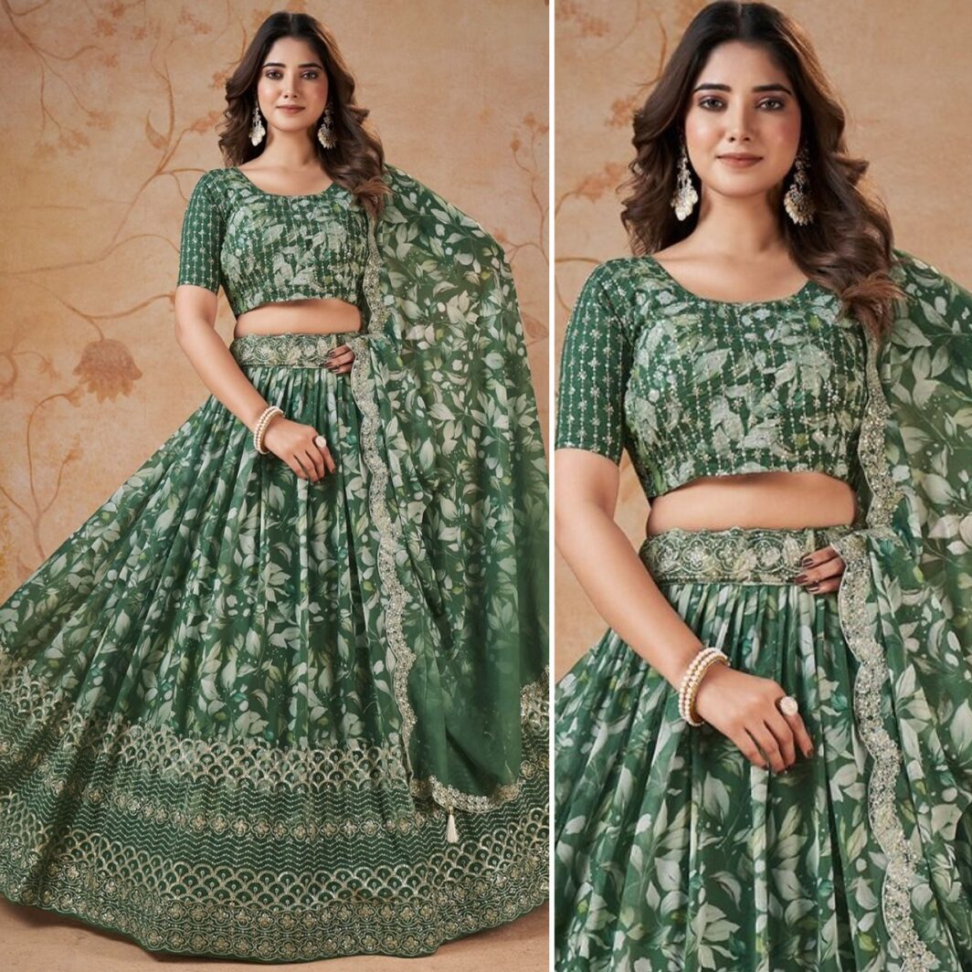 New designer georgette digital printed lehenga with zari and sequin embroidery work