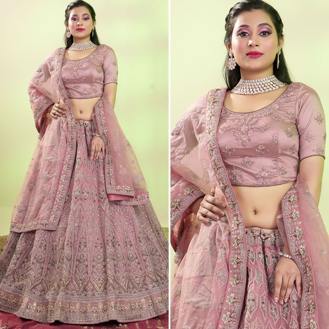 New designer soft net lehenga with stonework embroidery