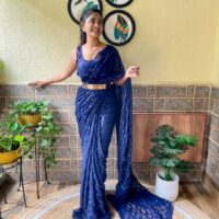 New Bollywood wardrobe team one minute ready to wear georgette sequin saree (free belt) (video available)